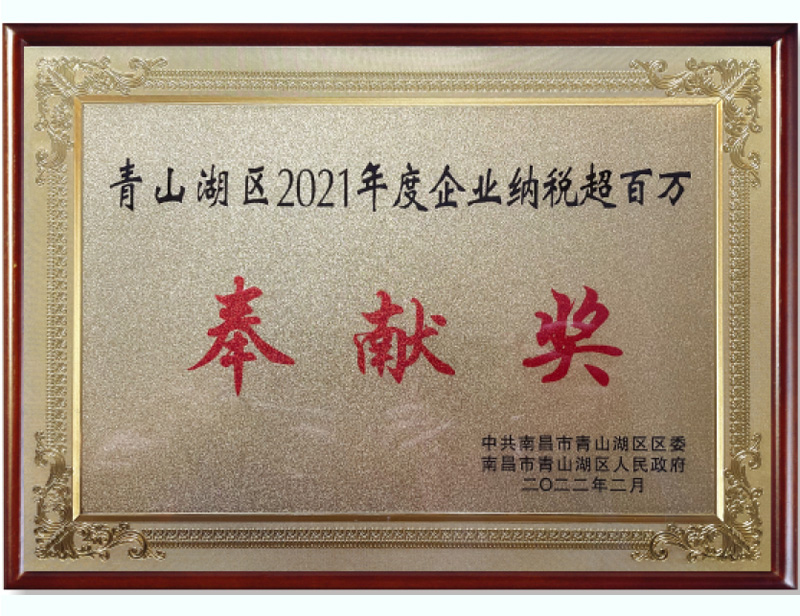 2021年青山湖區企業納稅超百萬奉獻獎